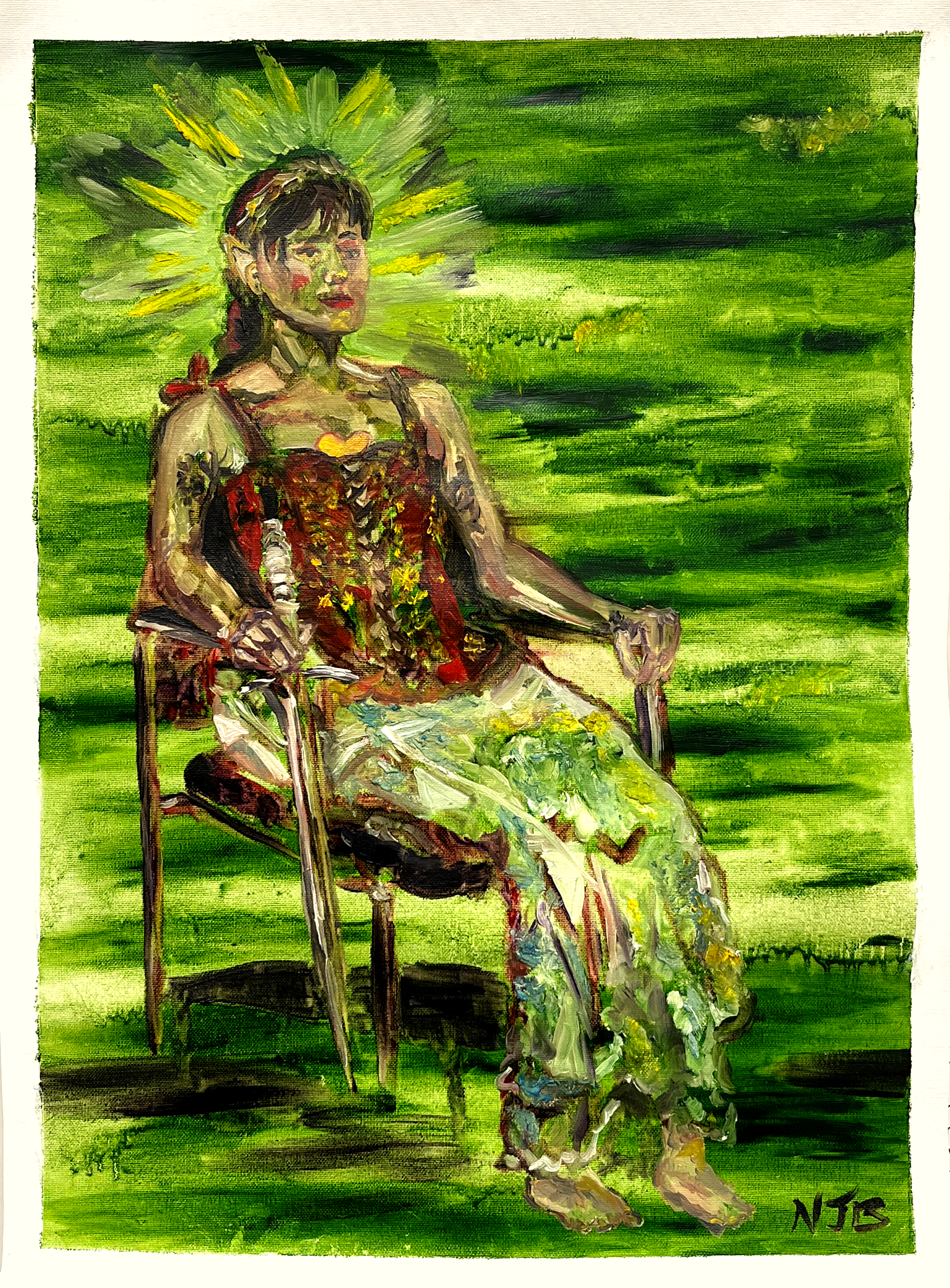 Princess. Oil and cold wax on 16" x 18" unstretched canvas. 2024. Nia Blue.